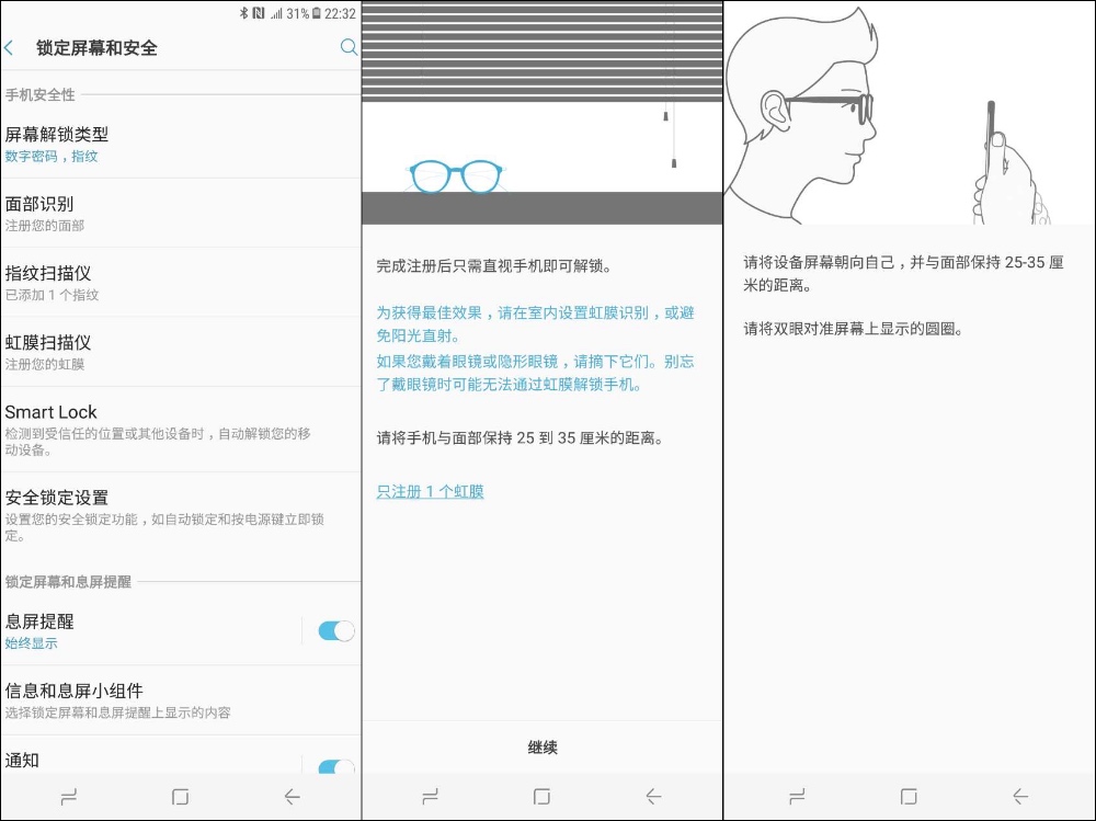 三星S8+有三种生物识别技术,分别是虹膜,指纹和面部识别,其中虹膜识别更易于手机信息的安全。对于商务人士,也是一种更好的保护。